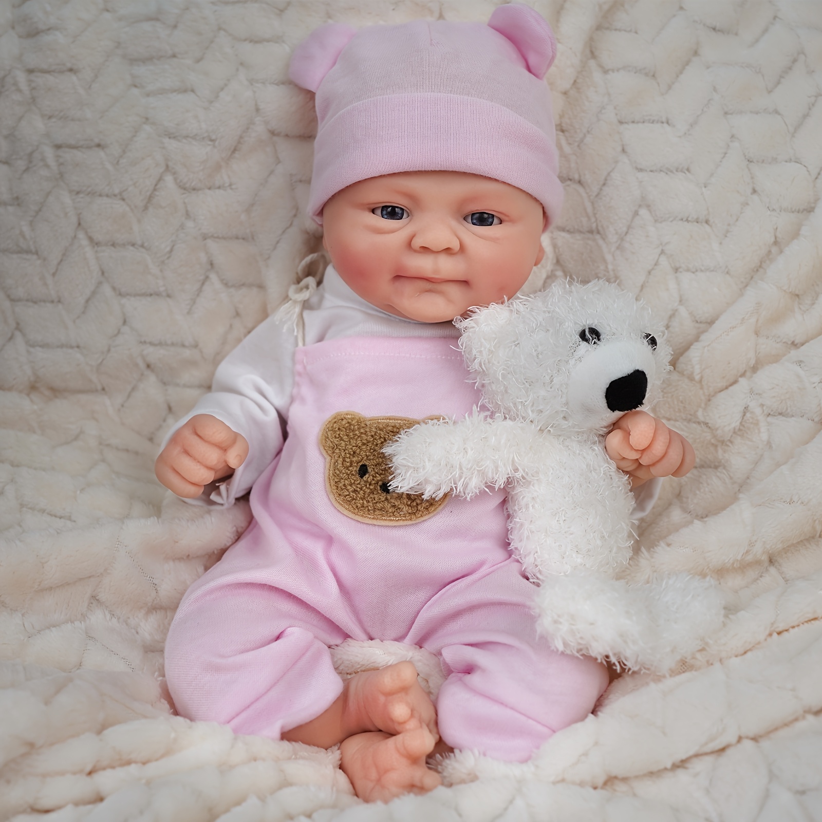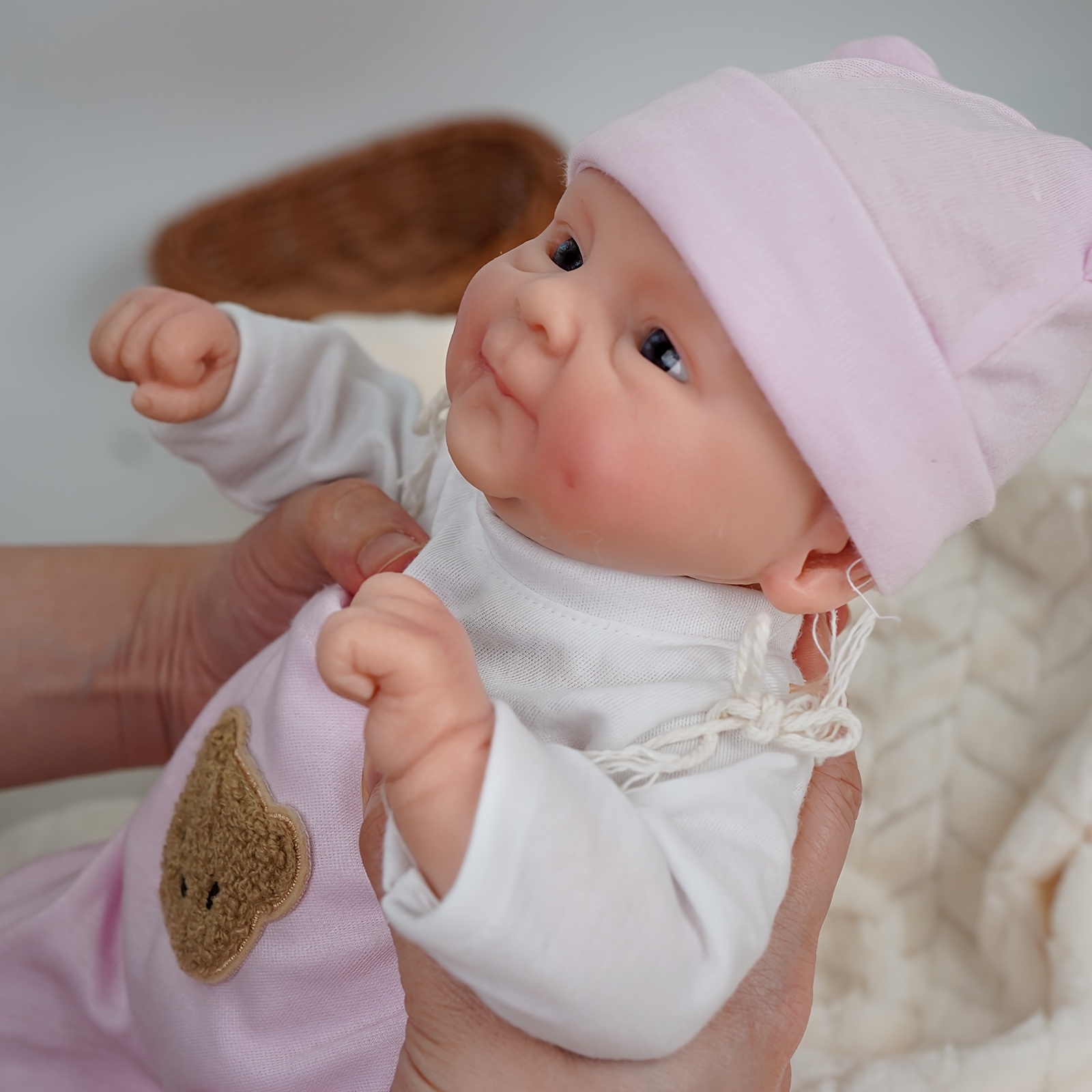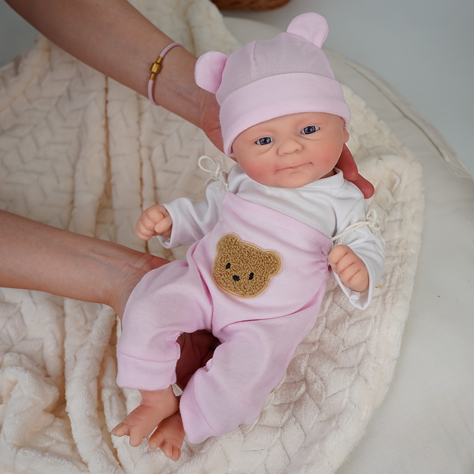14-Inch Pink Strap Dress Cute Big-Eyed Silicone Reborn Doll for Girls, Handcrafted Painted Soft Solid Reborn Doll Companion, Suitable for Family, Children, Friends, And As a Collectible Gift